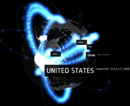Example of a visualization of the import of arms to the USA